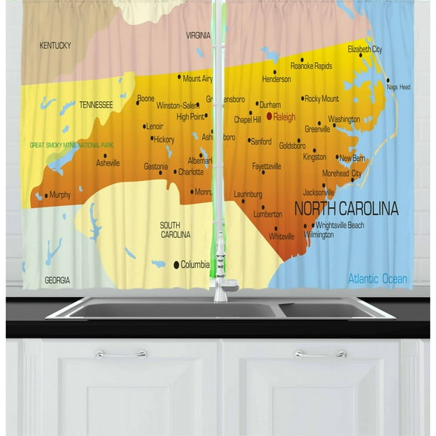North Carolina Curtains 2 Panels Set Map Of An American State By Atlantic Ocean National Borders Illustration Window Drapes For Living Room Bedroom 55w X 39l Inches Multicolor By Ambesonne Walmart Com